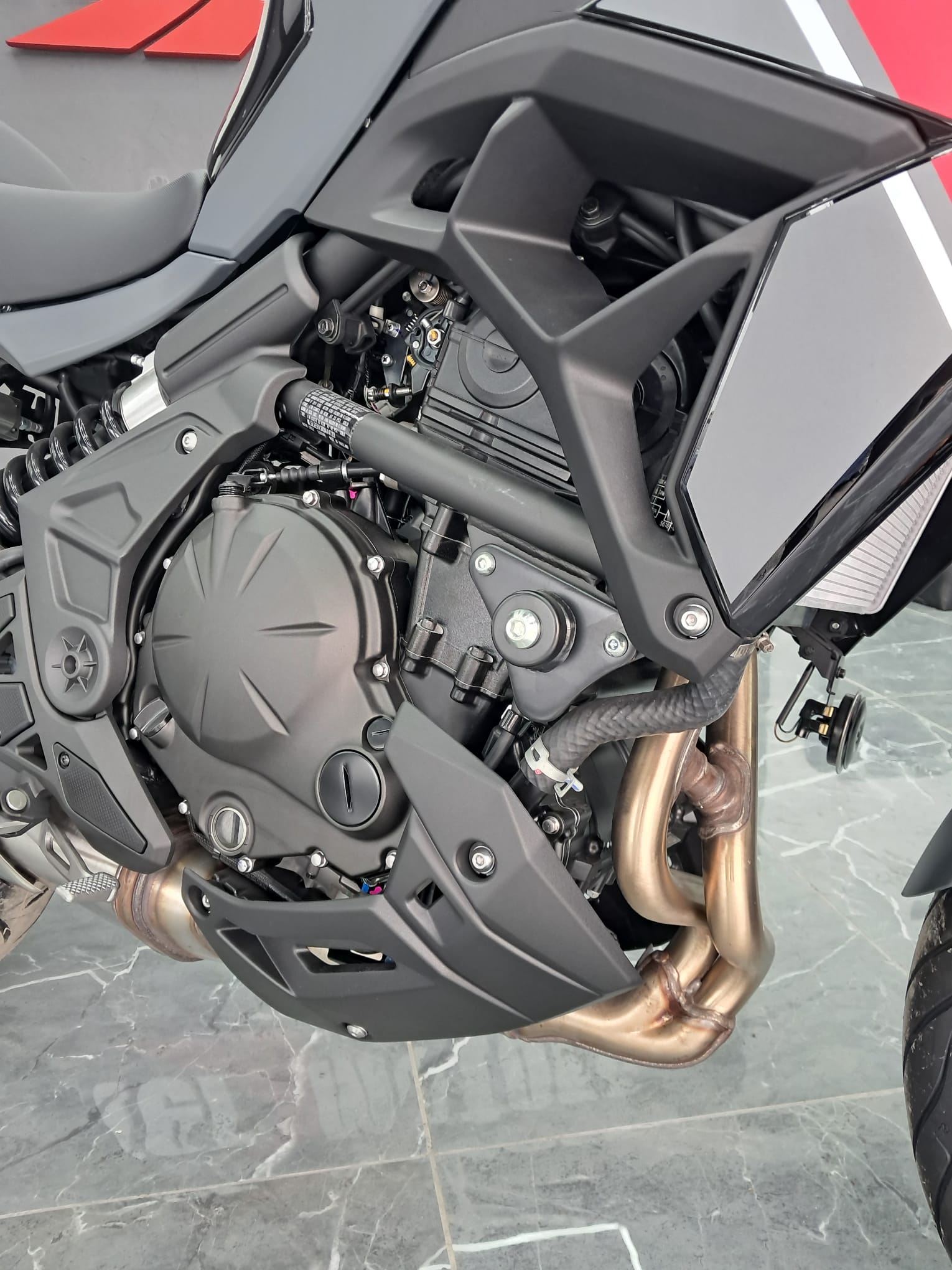 Cuenta con un motor bicilíndrico en paralelo de 649 cc, refrigerado por líquido, que genera una potencia máxima de 67 CV a 8500 rpm y un par máximo de 61 Nm a 7000 rpm.